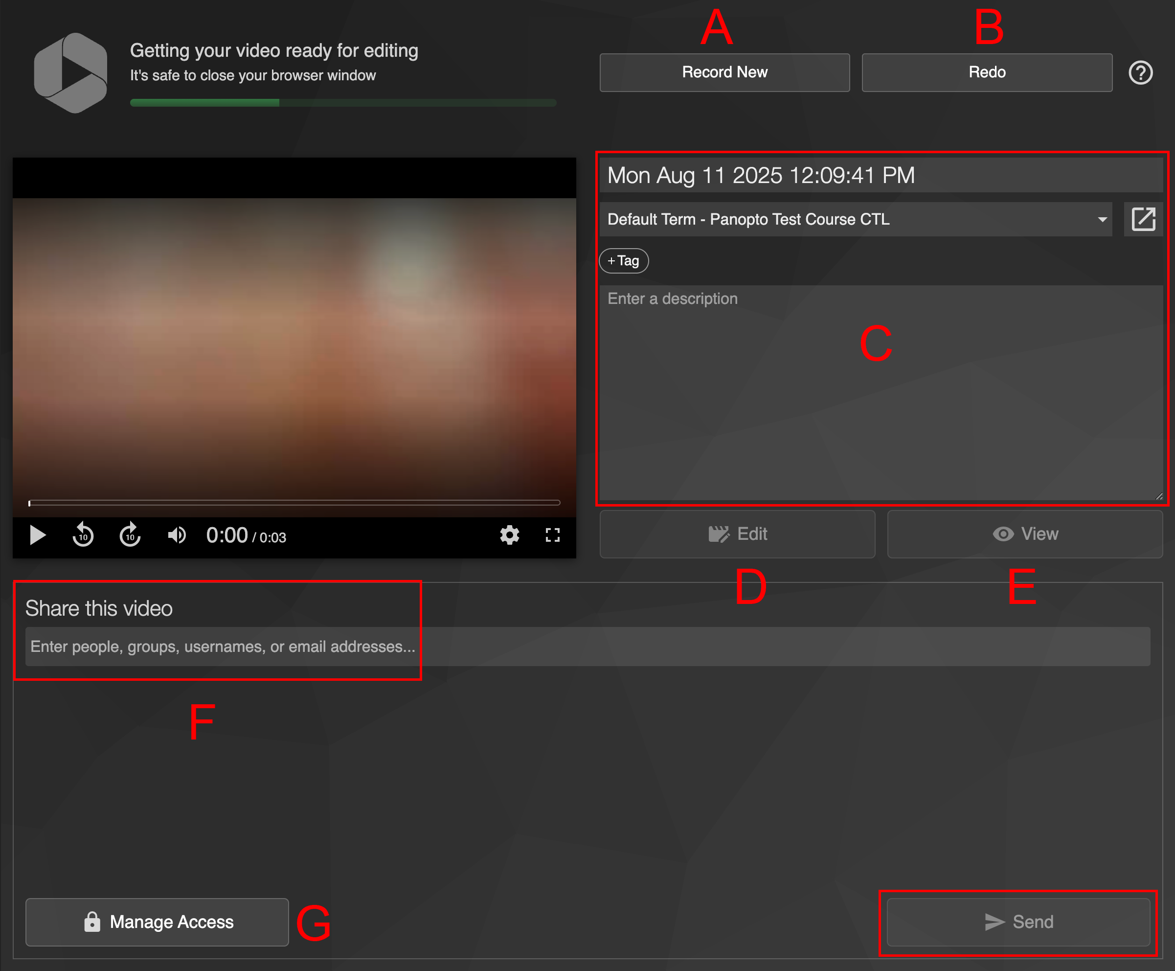 Please note: the Panopto Capture web recorder uses failsafe recording, where your captured media is stored on the local file system using a database within the web browser. This means that even if your browser crashes or your computer turns off, your video will finish uploading the next time you launch Capture. With that said, WashU strongly recommends that you use the desktop application if at all possible.