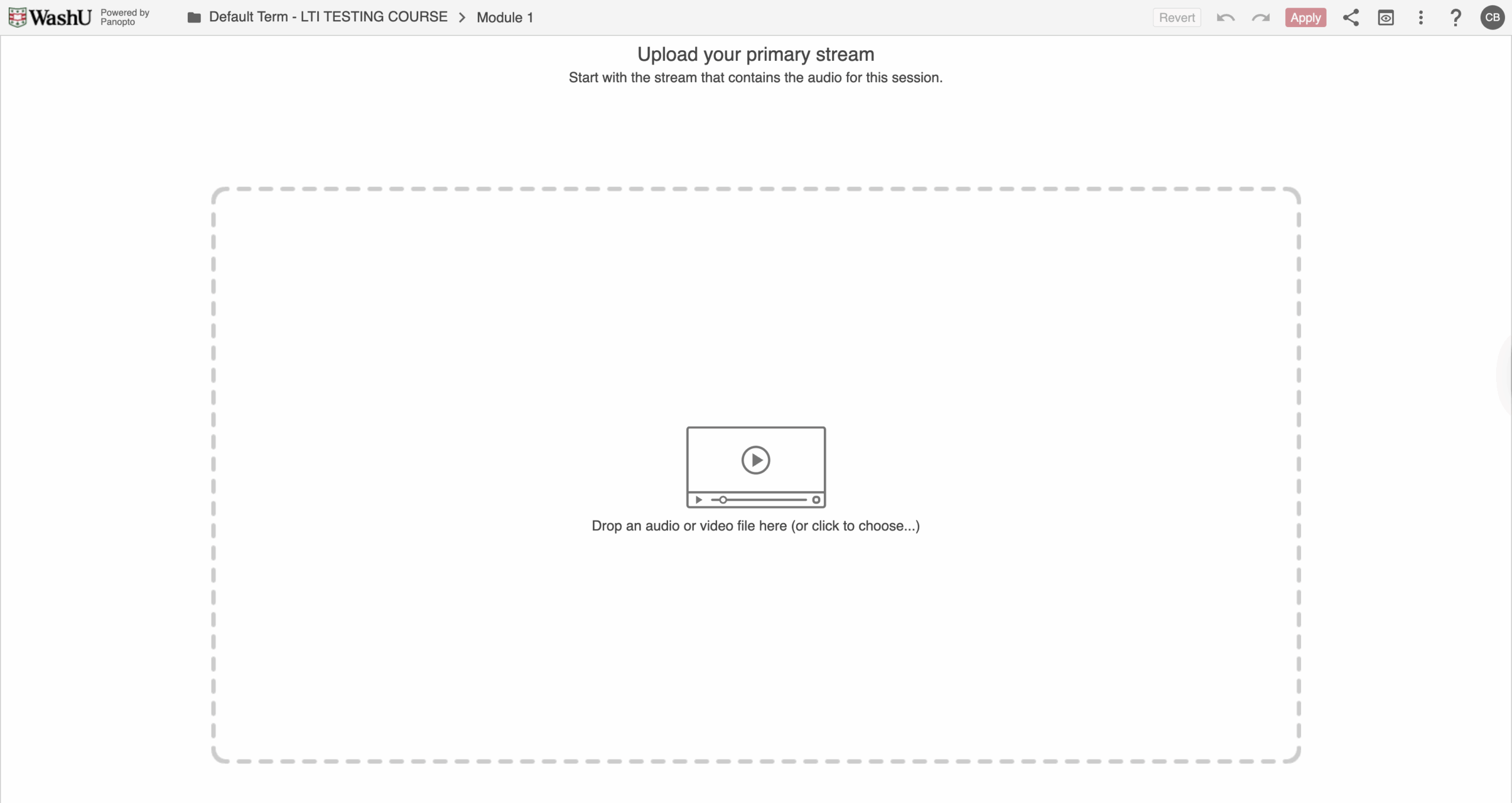 - Start by adding your primary video or audio source by either dragging and dropping the file within the dashed lines or clicking within the dashed lines to open the file explorer: