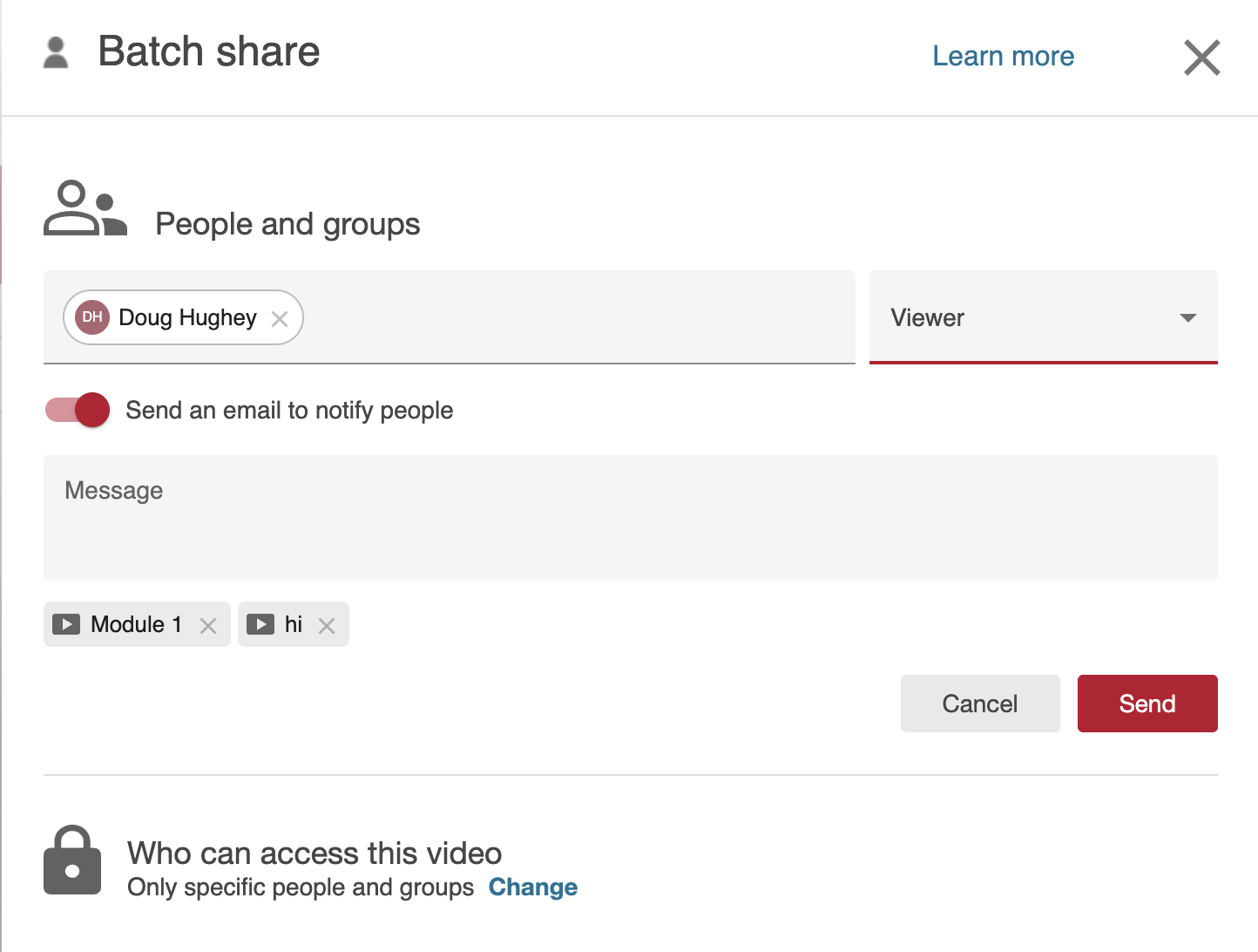 - Add the users you want to share with and then click “Send”: