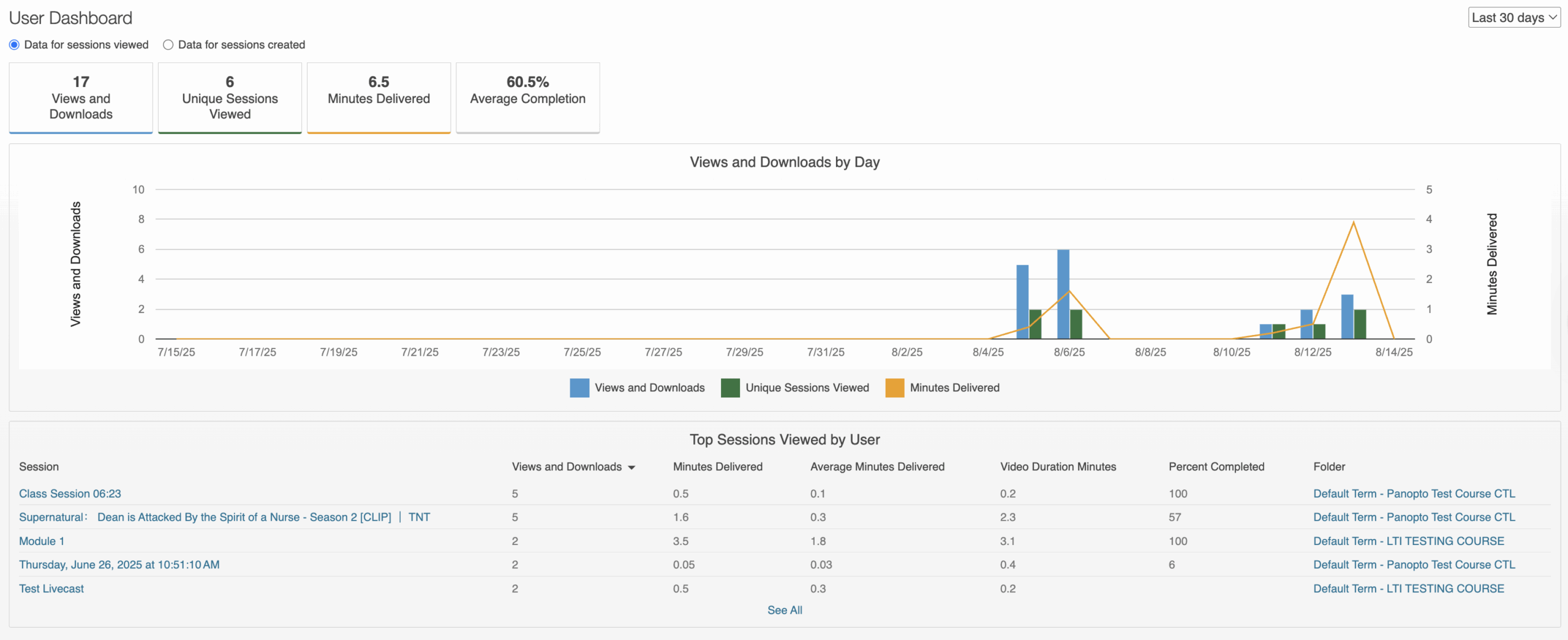 The user dashboard gives you the ability to see viewing statistics for videos you have viewed.