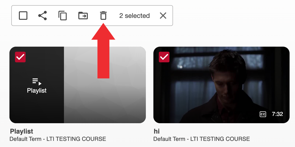 - Select the recording(s) you want to delete and then click on the “Delete” icon: