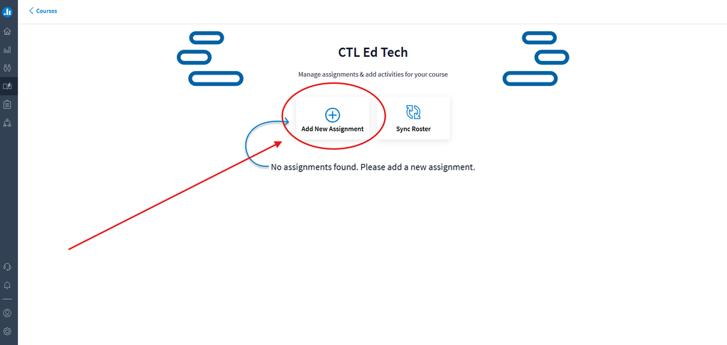 - Once you’ve entered your course, click the “Add New Assignment” button: